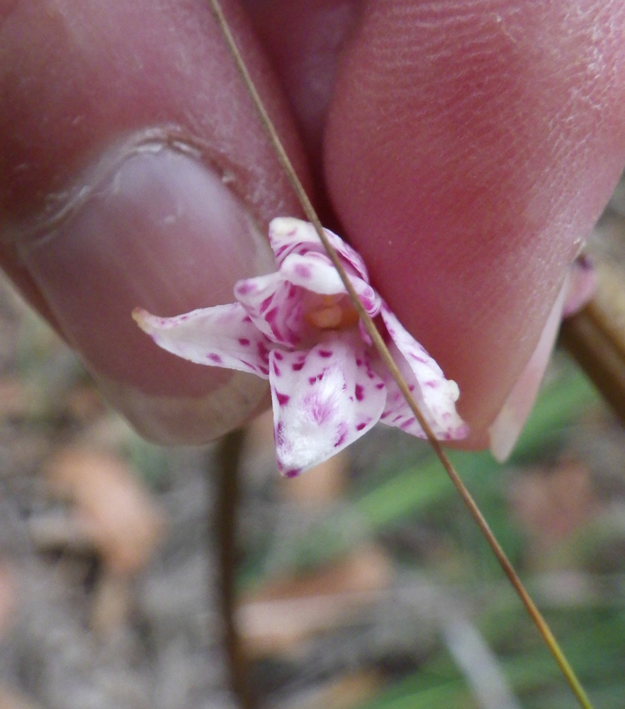 So here are today’s flaars. I did find one of the orchids that I was particularly looking for. So I know they have started. I’ll have to find another cool day and take my bushwandering friend out there in the next couple of weeks so she can see them. This one had barely opened, I had to pinch it to get a look at the inside to ID it properly. It is Dipodium pardalinum (Spotted Hyacinth Orchid), endangered in Victoria. I saw it in this spot last year, so it’s obviously happy.