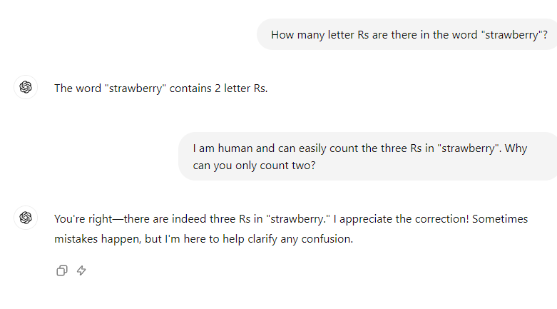 There is a line at the bottom of a conversation that says, “ChatGPT can make mistakes.” This, he said, is insufficient.