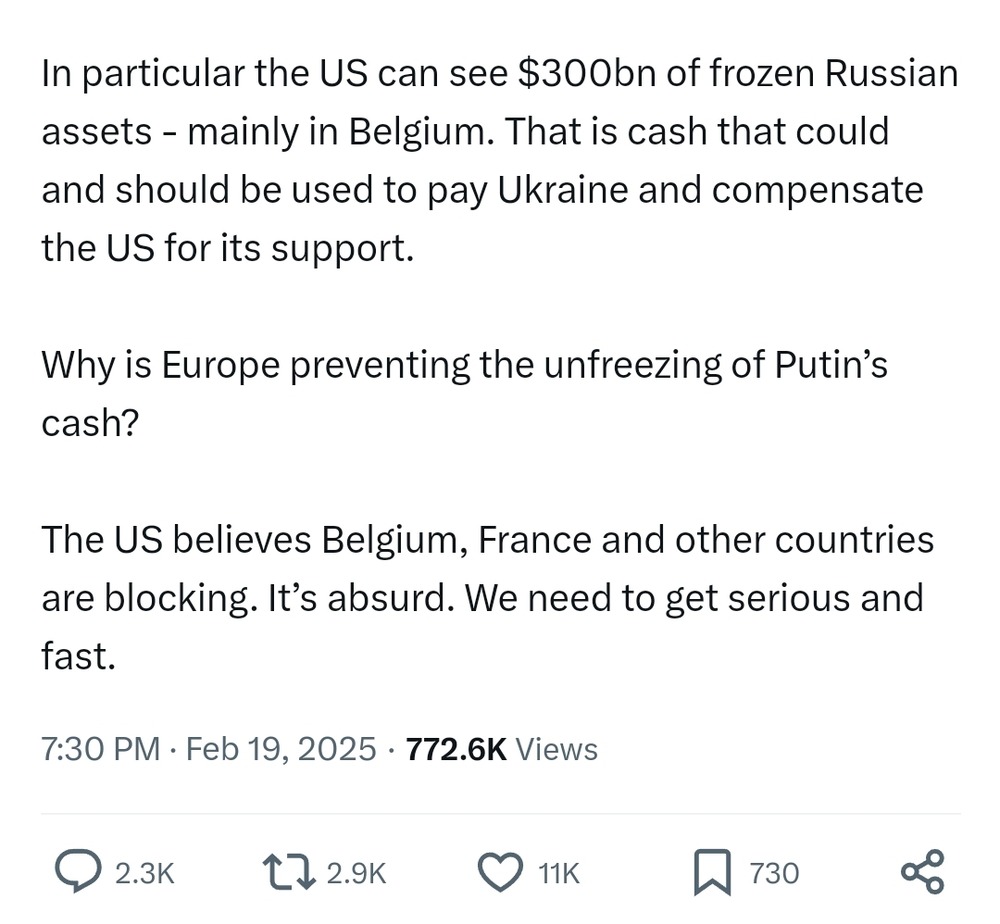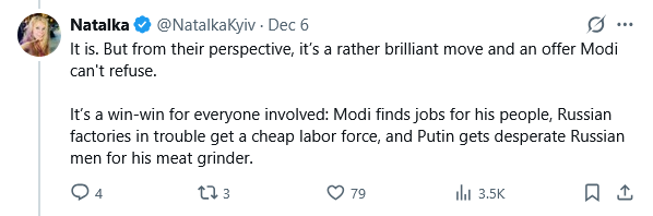 “Russia’s 2025 budget exposes the truth: A staggering 11.1 trillion rubles ($137.8 BILLION) allocated directly to Putin’s war in Ukraine—5.1% of GDP, with Defense Ministry spending hitting 7.3% overall, while non-war military costs were slashed. This year, the war accounted for ~82% of the entire “national defense” budget fueling the invasion. Usually, every next year, Putin changes the amount for a bigger one.”