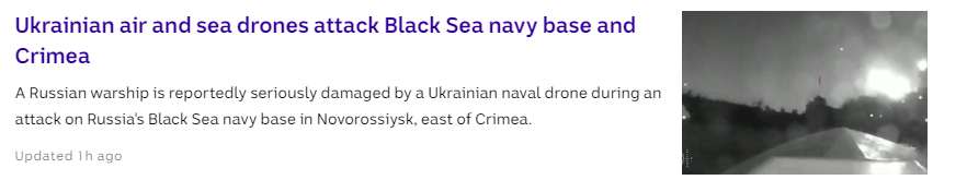 Ukraine’s domestic security service, the SBU, said it struck a Russian submarine in the Black Sea port of Novorossiysk, Russia, disabling it, in a first attack of its kind. Russia acknowledged the attack but said no ships or submarines were damaged.