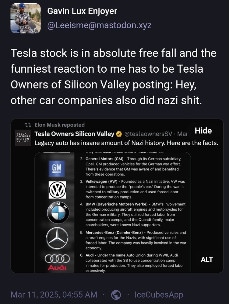 DV index thingy chooses not to work for me today (might be the vpn?) so I can’t find the Hate Elon thread and will put this here.“Elon Musk is demanding a $1 trillion pay deal from Tesla – the biggest in corporate history. And here’s the kicker: Australian super funds hold huge stakes in Tesla, meaning our retirement savings could help pay for it.