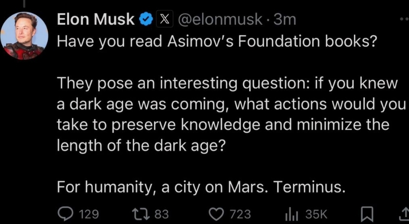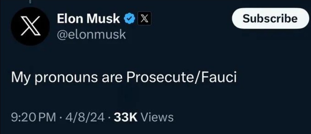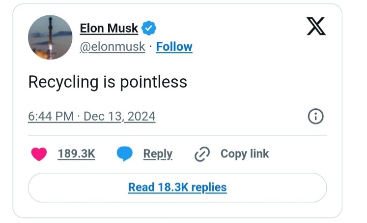 That would be the most stupid and misleading comment I have encountered regarding Elon Musk.