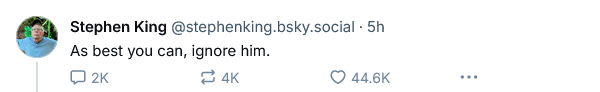 I really don’t pay much attention to him, discussing people is boring most of the timeGreat minds discuss ideas; average minds discuss events; small minds discuss people.