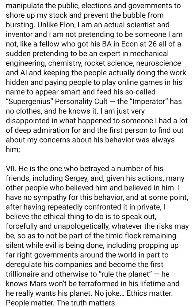 PermeateFree said:He employed the right people who could turn his ideas into reality. This bloke is really smart and yet you get these dummies trying to drag him down to their level. This action does not interfere with Musk in the slightest but does indicate the small-mindedness of certain people.
