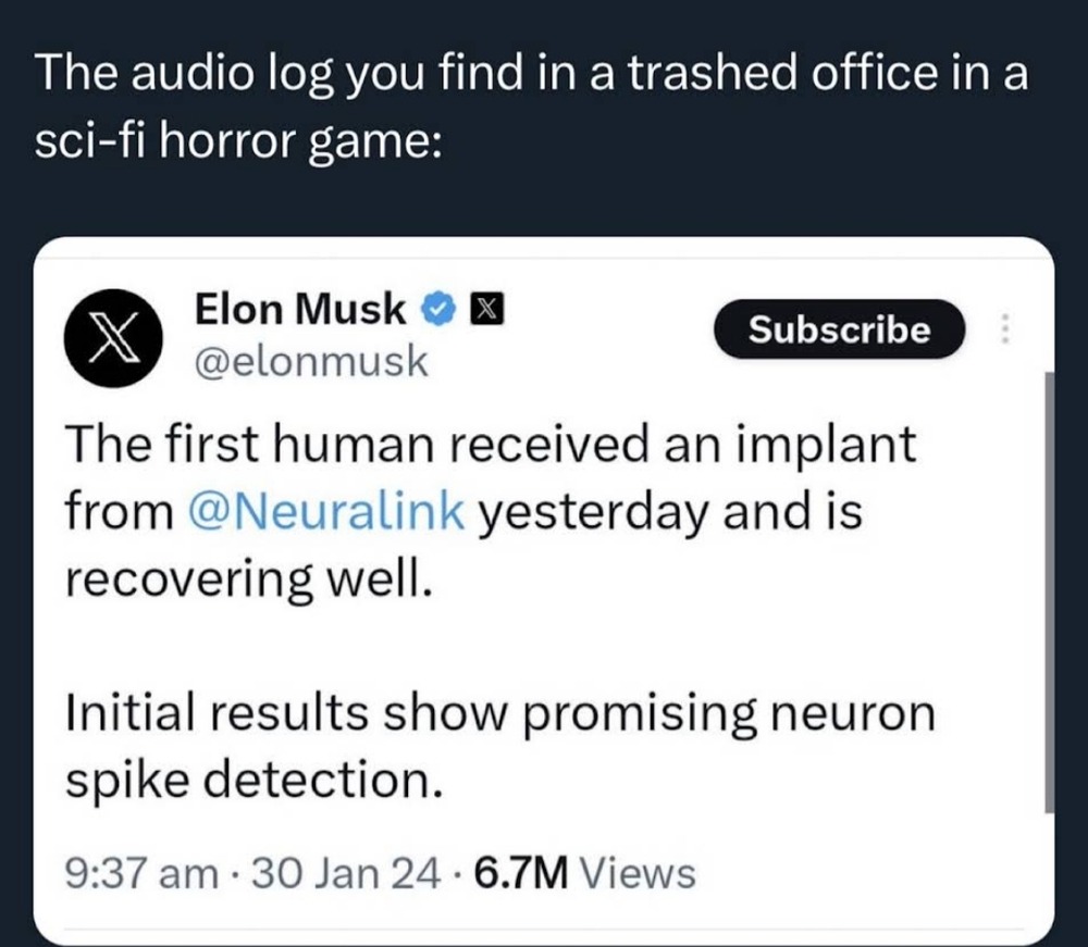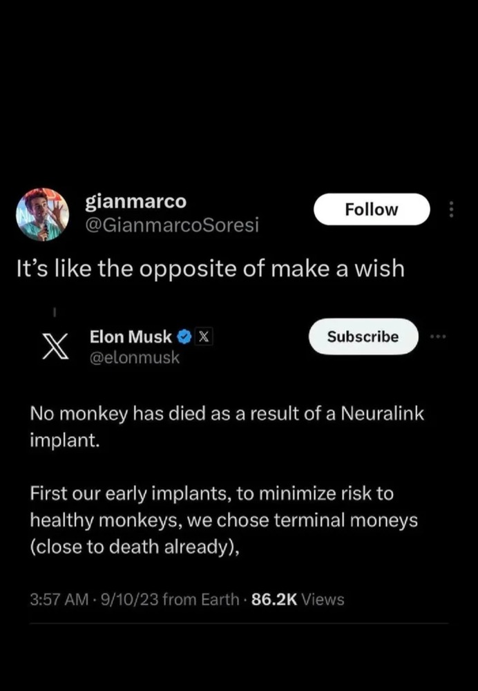 Buuuuut it’s a company run by Musk, who has a long history of fucking things up and being a general fuckwit doing non-ethical things. He’s not involved in the day to day research, development or implantation of the technology, he’s involved in how to make squillions of dollars with the least amount of effort. Typical billionaire stuff, you know?