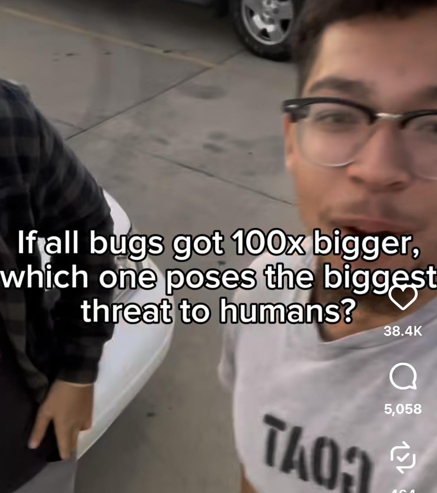 btm said:If by “bugs” they mean insects generally (my first thought was computer bugs, then listening devices, then bacteria/viruses, but they make any sense in context; bug has a specific entomological meaning (order Hemiptera.) Not all insects are bugs,) the answer’s none. They would suffocate pretty quickly; their breathing apparatus (spiracles) consists of tiny tubes through their bodies open to the air. Gas exchange is passive. This technique doesn’t scale, so above a certain (limited) size, the insects would die quickly. Even if they could overcome the problem of breathing, they couldn’t walk: their legs couldn’t hold their new weight.