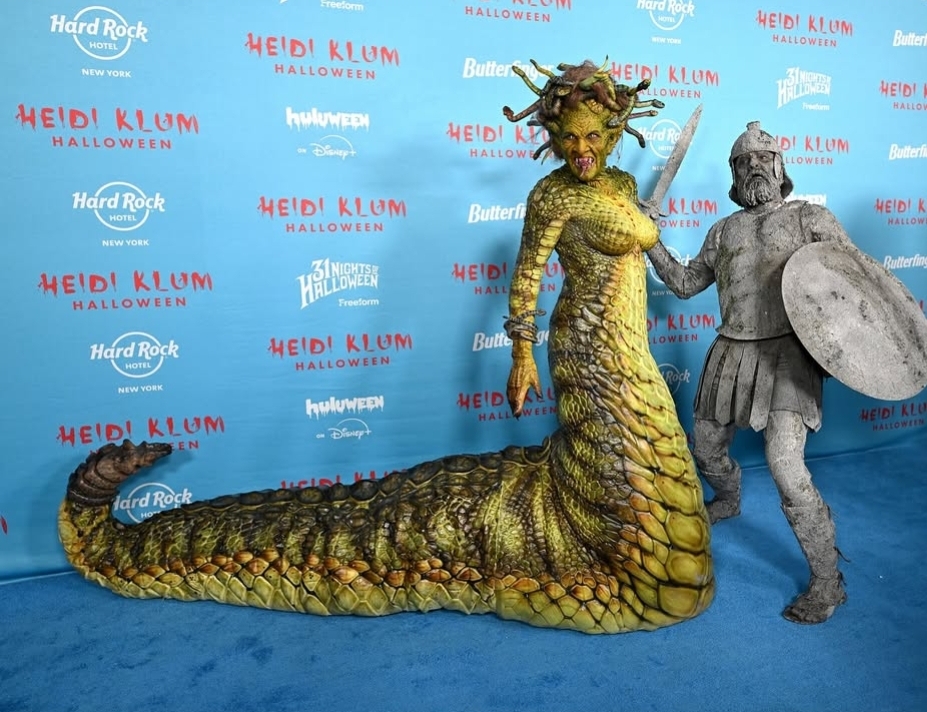 Appreciate the work Klum puts into the Halloween costumes but I never suspected that Medusa had a slug-like tail.