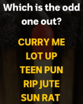 The answer could have been DICE, as the only word that didn’t have anything different about it, but furious spoiled that option.