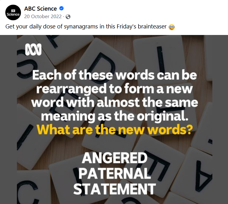 It’s from Radio National and, along with FB, the quiz also appears on Instagram – https://www.instagram.com/abcradionational/
