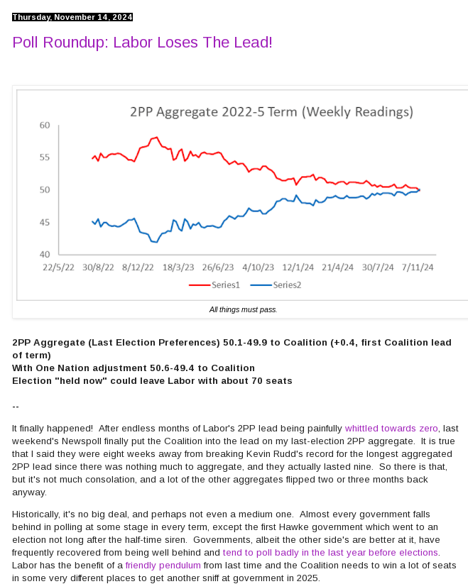 It’s neck-and-neck in the polling for the 2025 federal election: my view is that minority govt by one party or the other is almost assured and that Dutton would probably find it hard to manage his relationships with the Teals and Greens but a lot can happen in a few months.
