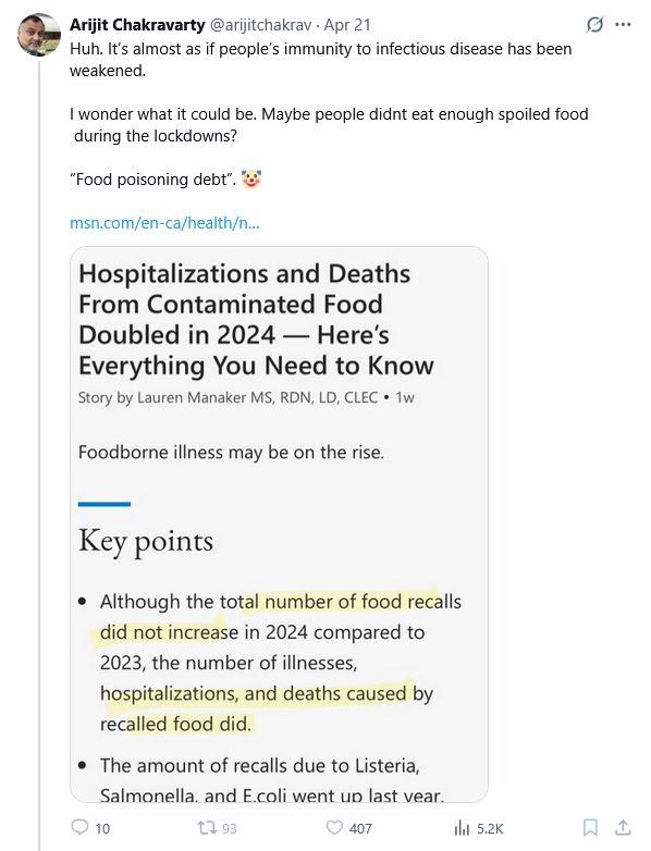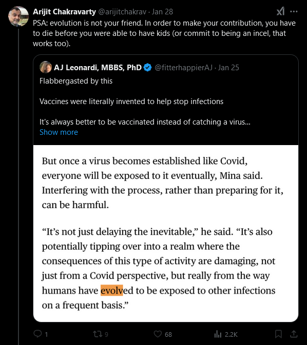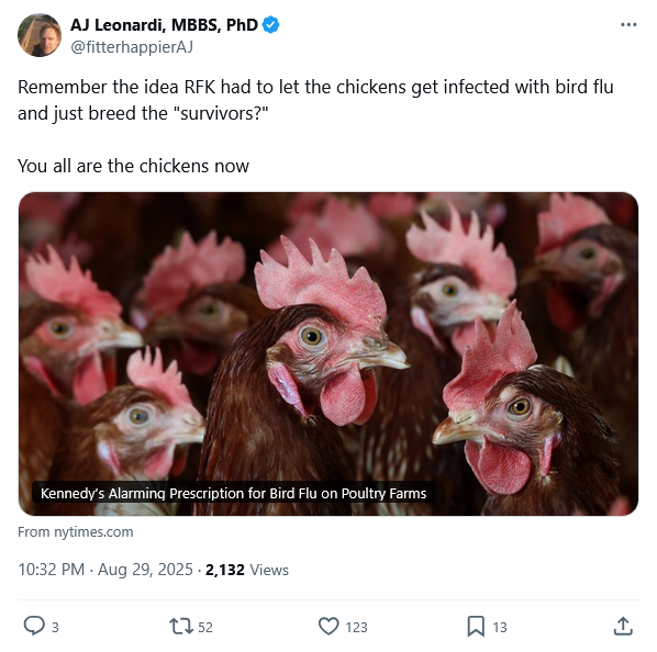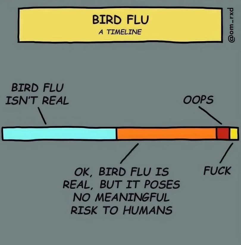 It is a fair bet that he’s talking about either unvaccinated people getting Covid or that bird flu has found its way into their neighbourhood?