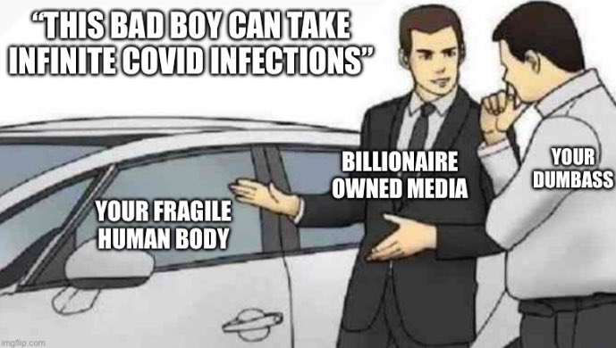 SCIENCE said:Well all right we wouldn’t know if this is it but we’dn’t be surprised if the antiinfectionists realised they could play the same game and use disinformation conspiracy theorist plays to change behaviour, as in tell a white lung lie to get the children to behave, call it an invisible odourless fog that the governments are allowing to poison everyone and the only way to protect yourself from the mind control is to wear a damn good mask