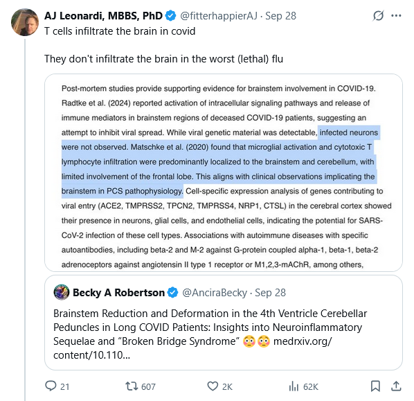 Scientists from Griffith University’s National Centre for Neuroimmunology and Emerging Disease used advanced MRI techniques to figure out the neurological implications of Covid-19 compared with those who had never been infected. The research found compelling evidence that even in the absence of ongoing symptoms, prior infection with the virus could leave a measurable imprint on the brain. “The research also reported that altered brain tissue was associated with symptom severity in individuals with long Covid suggesting the virus may leave a silent, lasting effect on brain health.”