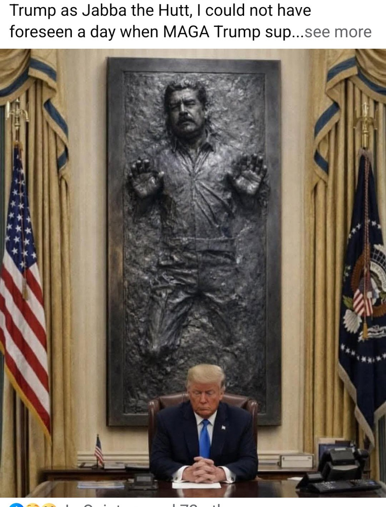 Witty Rejoinder said:It’s Jabba the Hutt giving Trump his most prized possession.