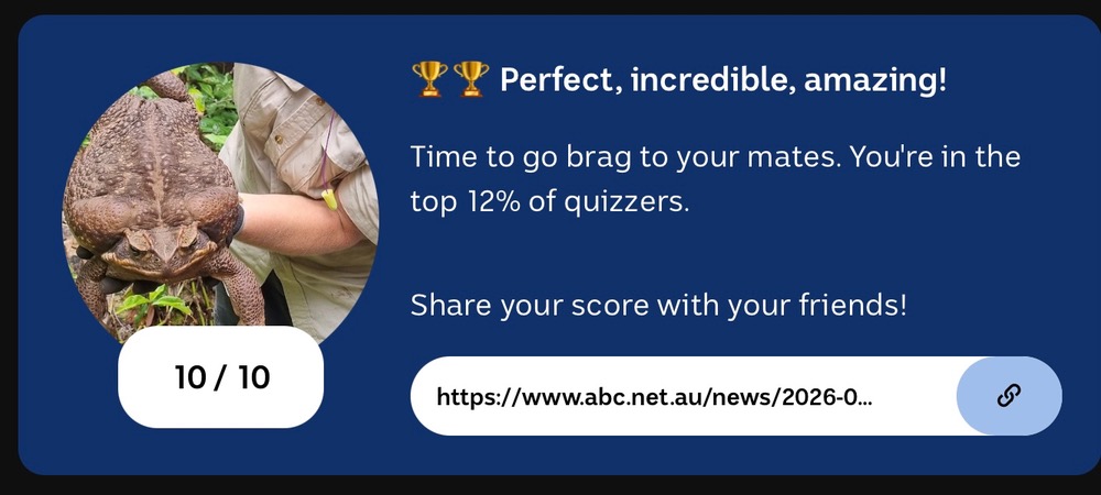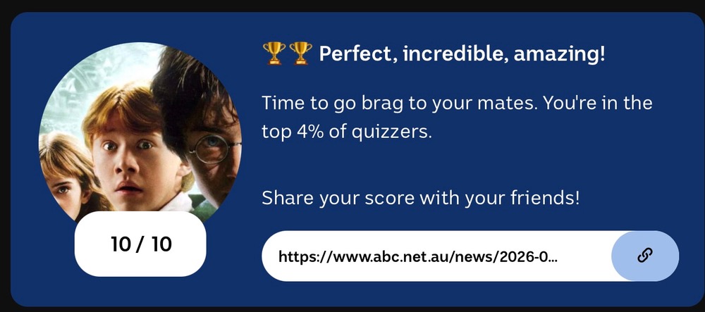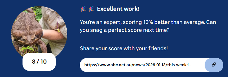 4.5/10. Every single one was a guess except Q8https://www.abc.net.au/news/2026-01-01/2026-quiz-events-sport-entertainment/106189880