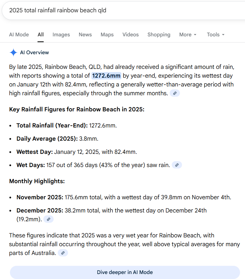 21.2 mm overnight but 1731 mm for the year which is the wettest annual total in the 30+ years I have been keeping records.
