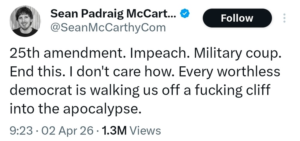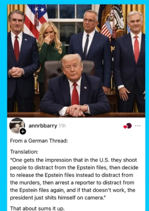 That, to me, is the real thread connecting all of this morning’s horror show. A downed American jet. Oil shock spreading through the global economy. Purges, cover-ups, war prayers, ballroom lunacy, and institutions being hollowed out right in front of us. This is not the portrait of a country that simply hired the wrong manager. It is the portrait of a system in visible decay, accelerating under leaders so drunk on grievance and spectacle that they confuse wreckage with power. Trump is emceeing the clown-car stage of imperial decline while the wheels bounce off in every direction.