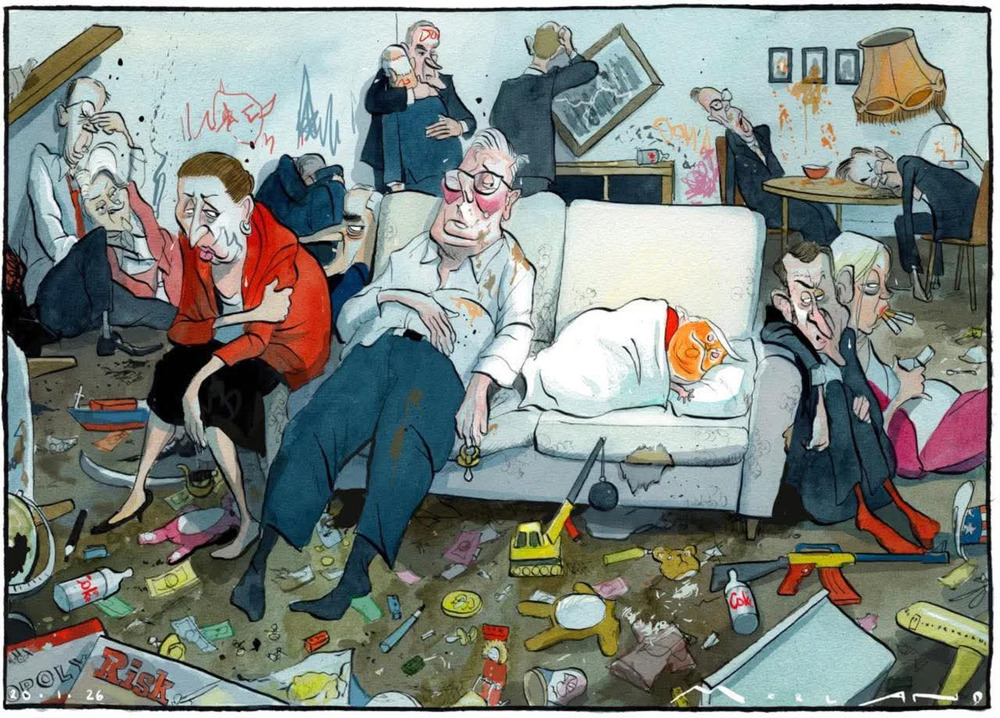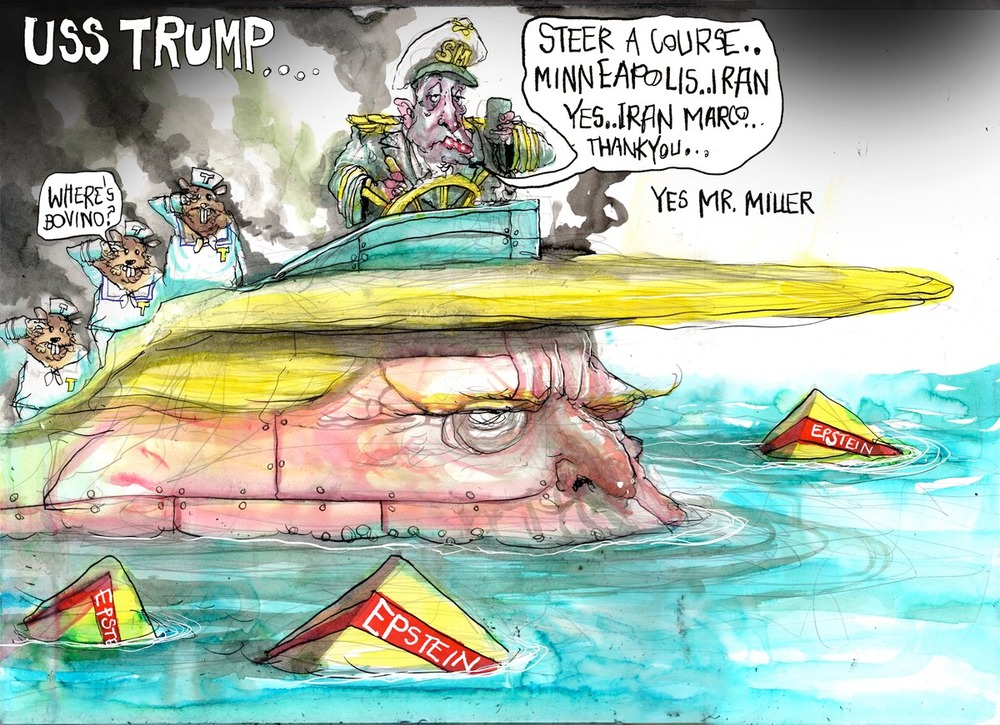 This from the same president who called the war “easy militarily,” babbled about regime change as maybe “luck” or maybe “talent,” and shrugged at questions about an apparent school strike with a flat “I don’t know that.” Instead of a commander-in-chief, we have a portrait of a delusional real-estate ghost haunting his own catastrophe: part vanity, part menace, part saliva.