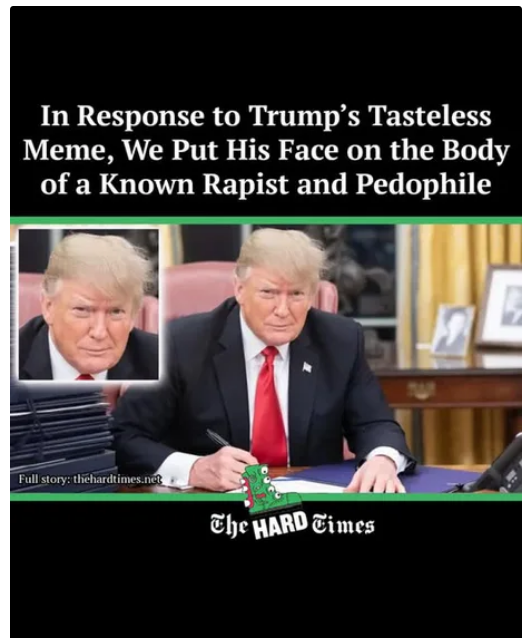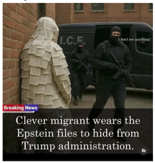 Even the visual gags cut deep — a faux logo invoking the Kennedy Center’s iconic silhouette, flanked by Trump’s name and a redacted reference to a “13-year-old girl,” a brutal satirical nod to the long, uncomfortable history surrounding Trump, Epstein, and institutional silence.