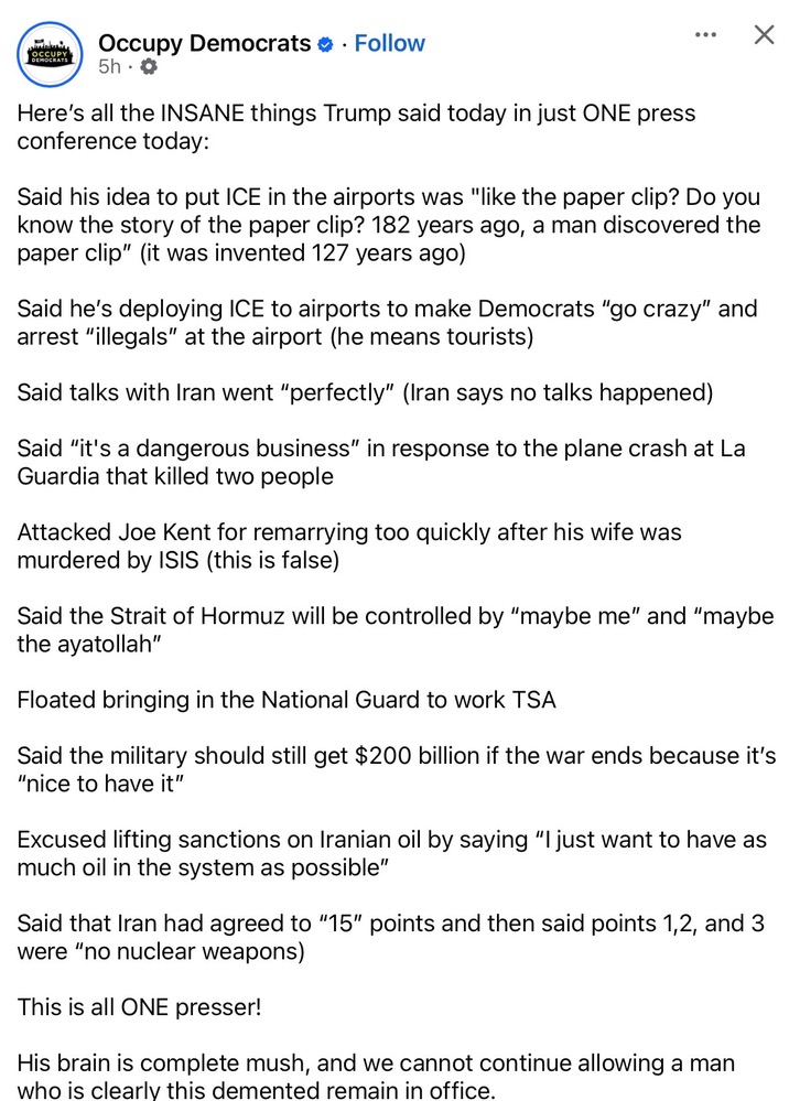 So this is from Occupy Democrats. (My sister put up a different piece from the website but I got caught by this one on the way) It’s labelled as 3hrs ago.