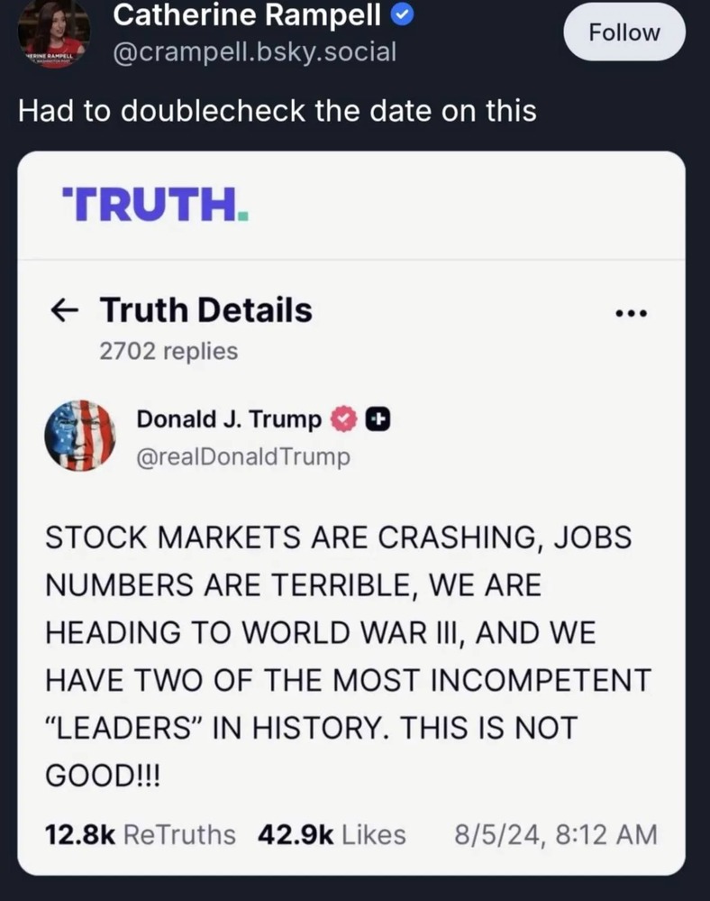 Matt Randolph’s warning on oil markets sharpens that picture. His focus was not just the headline futures price, but the surge in Dated Brent, the benchmark for real physical crude cargoes, which Reuters-backed reporting and market data have tied to levels above $141 a barrel, the highest since 2008. Randolph’s core point is that when the physical market blows out like this, the pain does not stay theoretical. It works its way into gasoline, diesel, exports, margins, inflation, and all the other delightful ways war arrives in civilian life disguised as a receipt. Trump can sneer that he doesn’t worry about markets, but that is because other people will do the worrying while he does the wrecking.