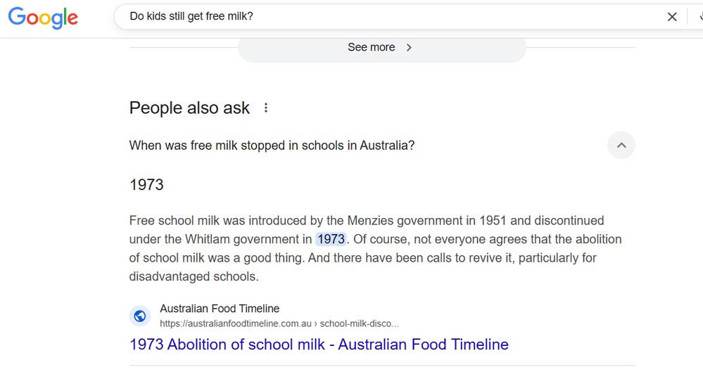 roughbarked said:The school milk delivery sat in the sun until playlunch. Undrinkable by then.