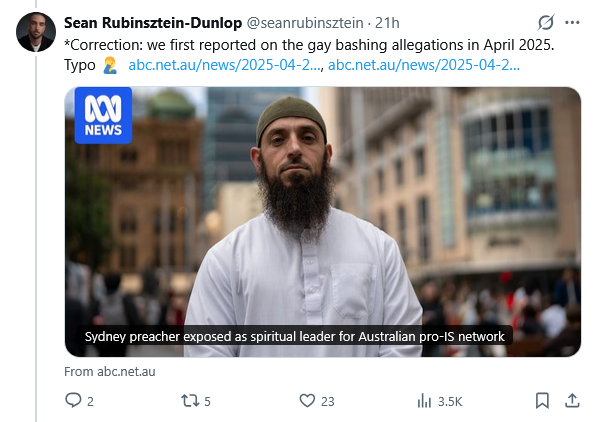 yeah can’t find it now but we encountered another of Their ABC articles where they said ASIO or whatever had the threat level at over 50% that there would be a terrorist attack or planning for such in the next year