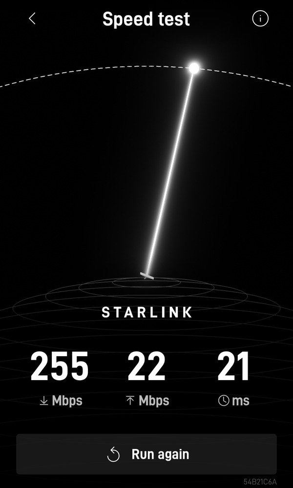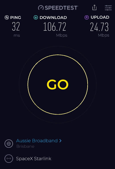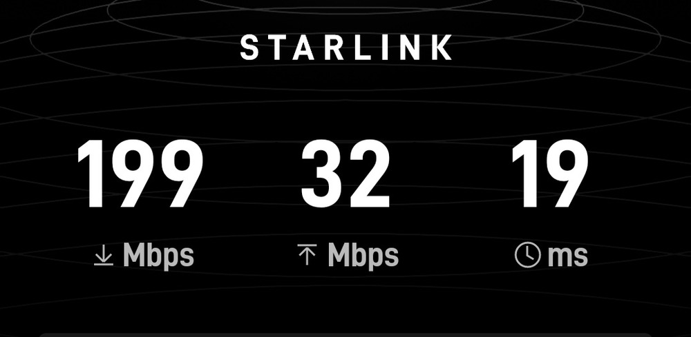 The starlink speed test is actually a bit misleading. It only tests the speed across the starlink part of the network. Other web based speed tests show a more ‘real world’ result. Regardless, starlink is quite impressive.