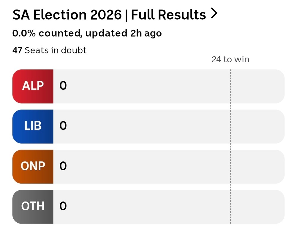 Pretty clear now that the eleven Leg Council members elected will be 5 ALP, 3 ONP, 2 Lib, 1 Green. The total LC then, combined with those elected in 2022, will be 10 ALP, 6 Lib, 3 ONP, 2 Green, 1 Sarah Game (former ONP).