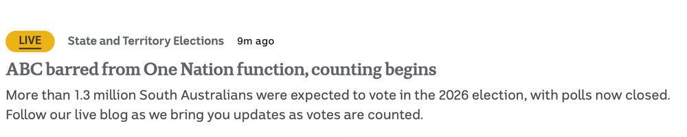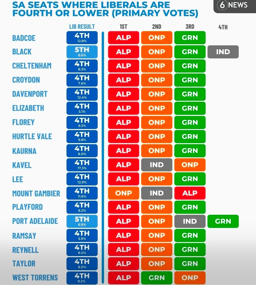 ONP looks to get at least 3 seats in SA and lead in another. Now just to see if they implode like Palmer United/UAP in time to totally ruin their chances in Victoria come November.