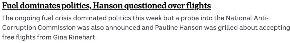 I really can’t see Hanson running a country. She has had difficulty running her party at times.