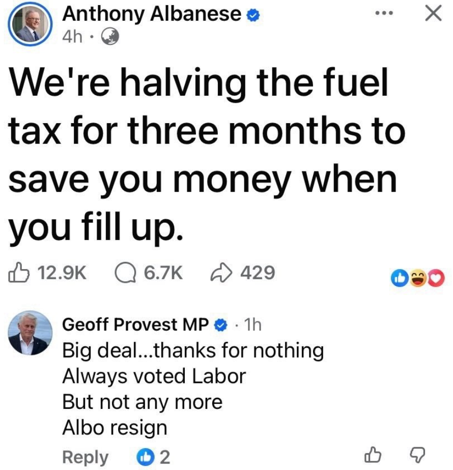 we mean duh when they cut back on renewables and battery subsidies to subsidise fossil fuels instead it’s win win win for the government looking good and the casual drivers and the oil companies