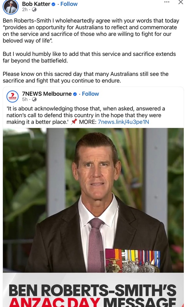 Maybe it’s just me but I’m not sure BRS is the best spokesperson for Anzac Day.