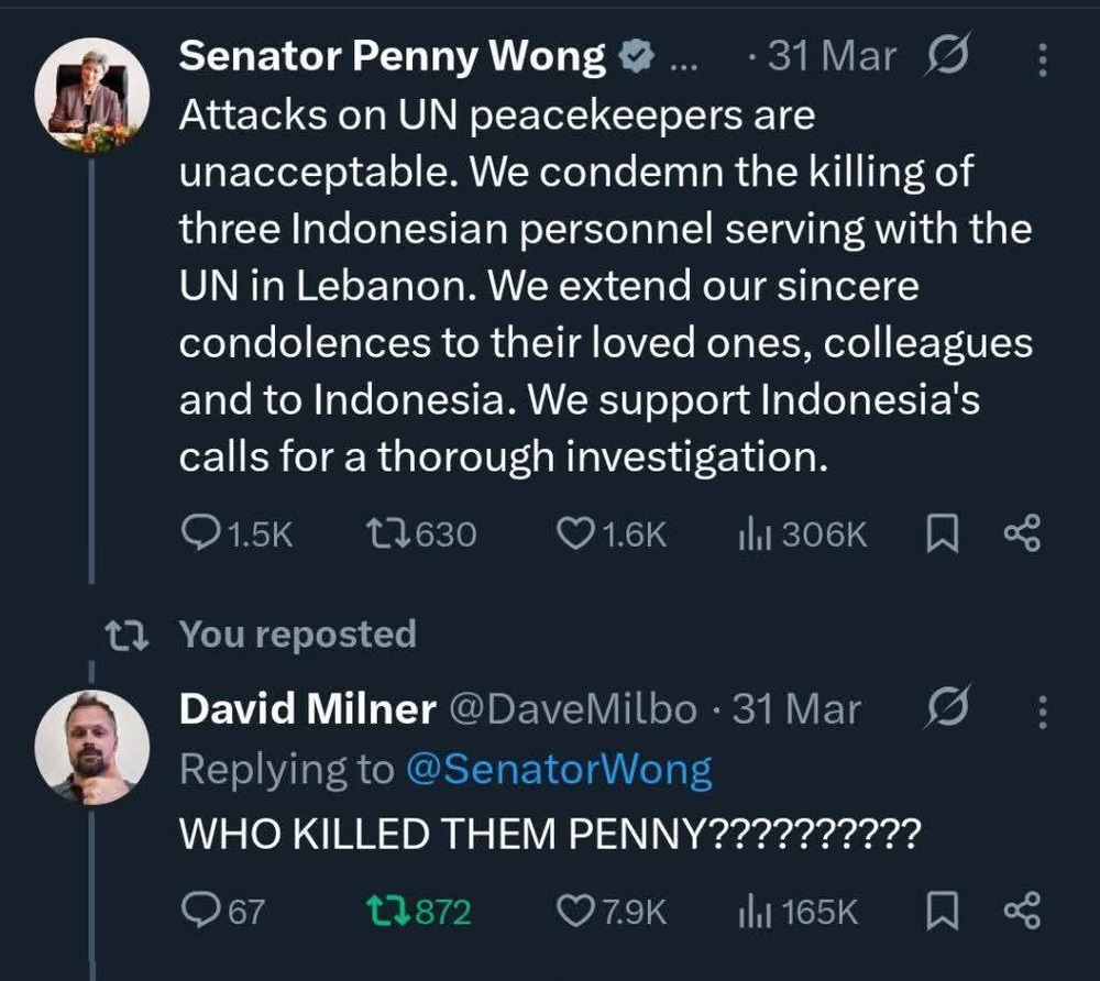 What was most stark in Albanese’s address was the failure to mention the man who is behind the latest shock, Donald Trump. He was the Voldemort of the address — never mentioned — and yet in the public’s mind he is the single biggest impediment to their economic security. Albanese may be doing his best to offer words of assurance to the country, but it is the actions of his US counterpart that will determine the outcome to this crisis.