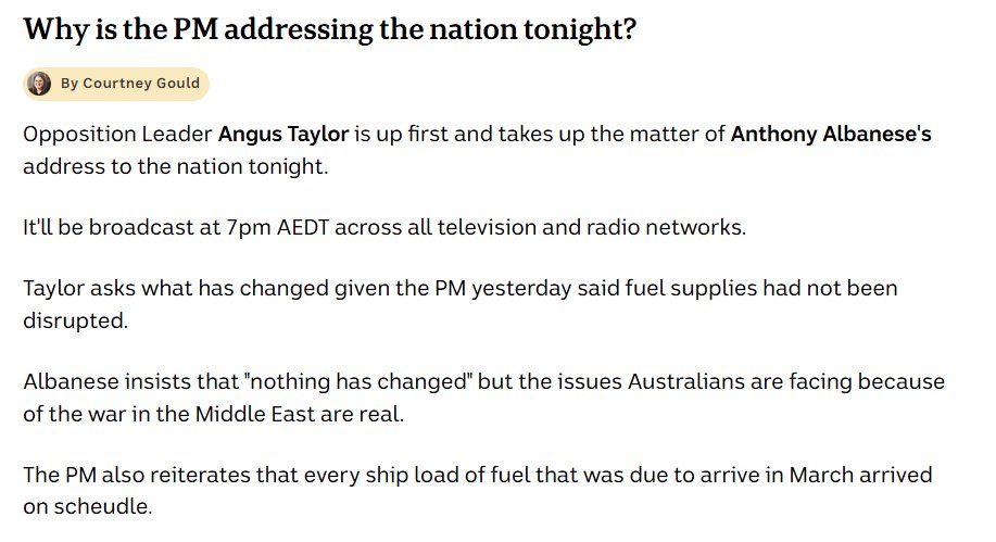 SCIENCE said:can’t wait to hear what this 1900 aedt announcement from dear leader is going to be, probably something like “iran are bad guys and they stopped the oil and we need oil so we’ve decided to join the oil liberation forces but other countries are bad guys because they’re big and we feel bullied so we aren’t going to buy more batteries and renewables and evs from them to actually solve the problem instead” let’s see