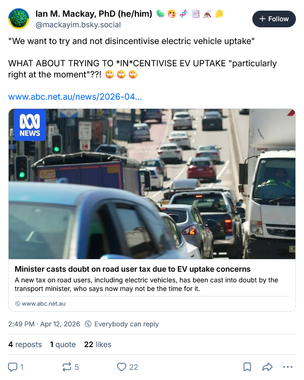 can’t wait to hear what this 1900 aedt announcement from dear leader is going to be, probably something like “iran are bad guys and they stopped the oil and we need oil so we’ve decided to join the oil liberation forces but other countries are bad guys because they’re big and we feel bullied so we aren’t going to buy more batteries and renewables and evs from them to actually solve the problem instead” let’s see