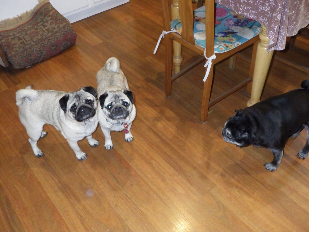 There is a general milling about of Pugs happening here. They are trying to convince me that the clock is wrong and really it is 5 o’clock and they should be fed.